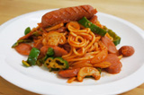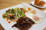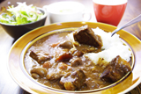 茨城のブランド「ローズポーク」のロースとバラ肉を使って食感の違いと美味しさをピリ辛カレーに仕上げています |